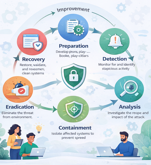 Incident Response (IR) services are specialized cybersecurity capabilities designed to help organizations detect, analyze, contain, eradicate, and recover from security incidents. A structured incident response approach minimizes downtime, limits data loss, and supports regulatory and legal compliance.