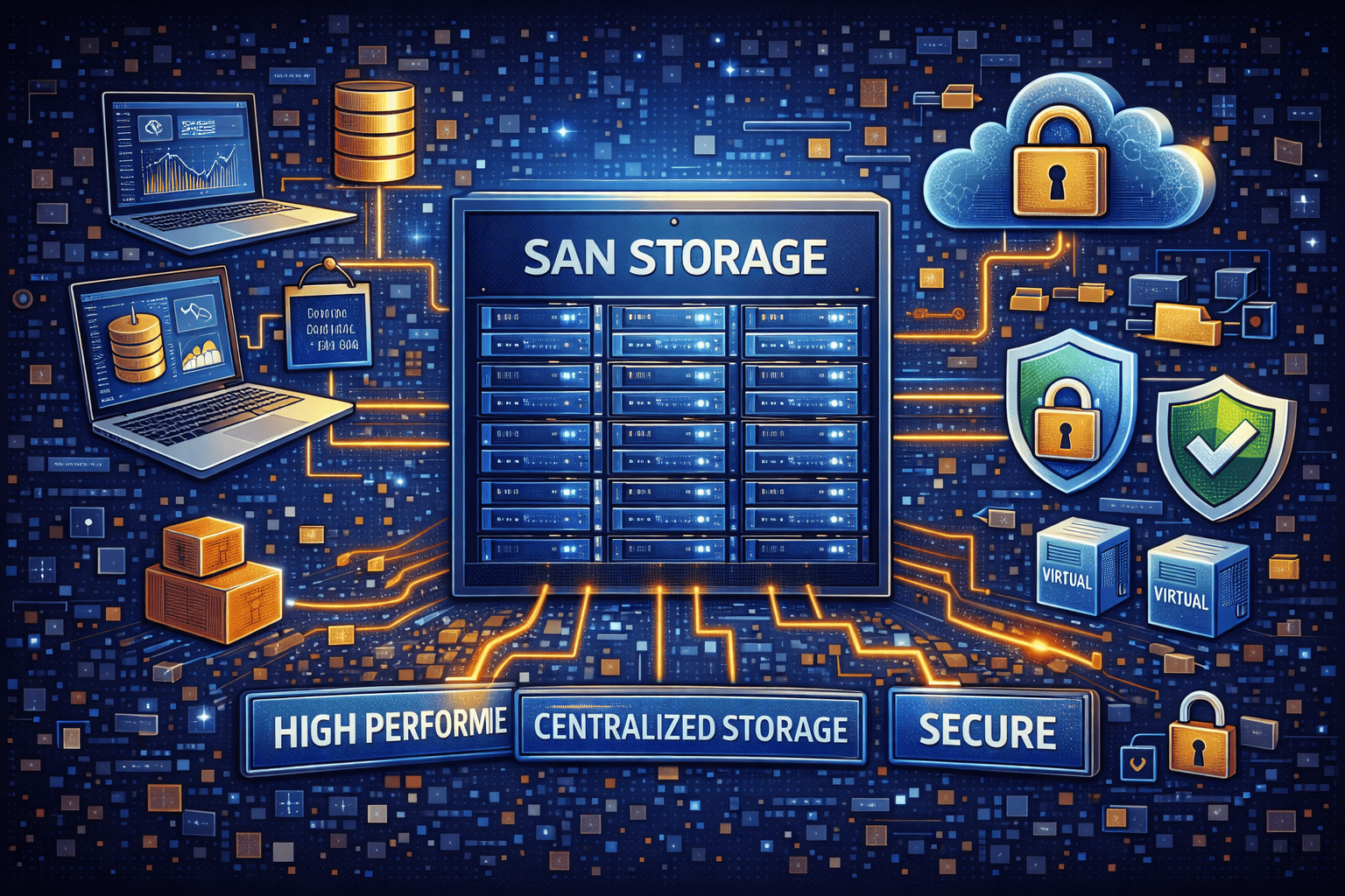 SAN storage is a high-speed network that connects servers to shared storage as if it were local.